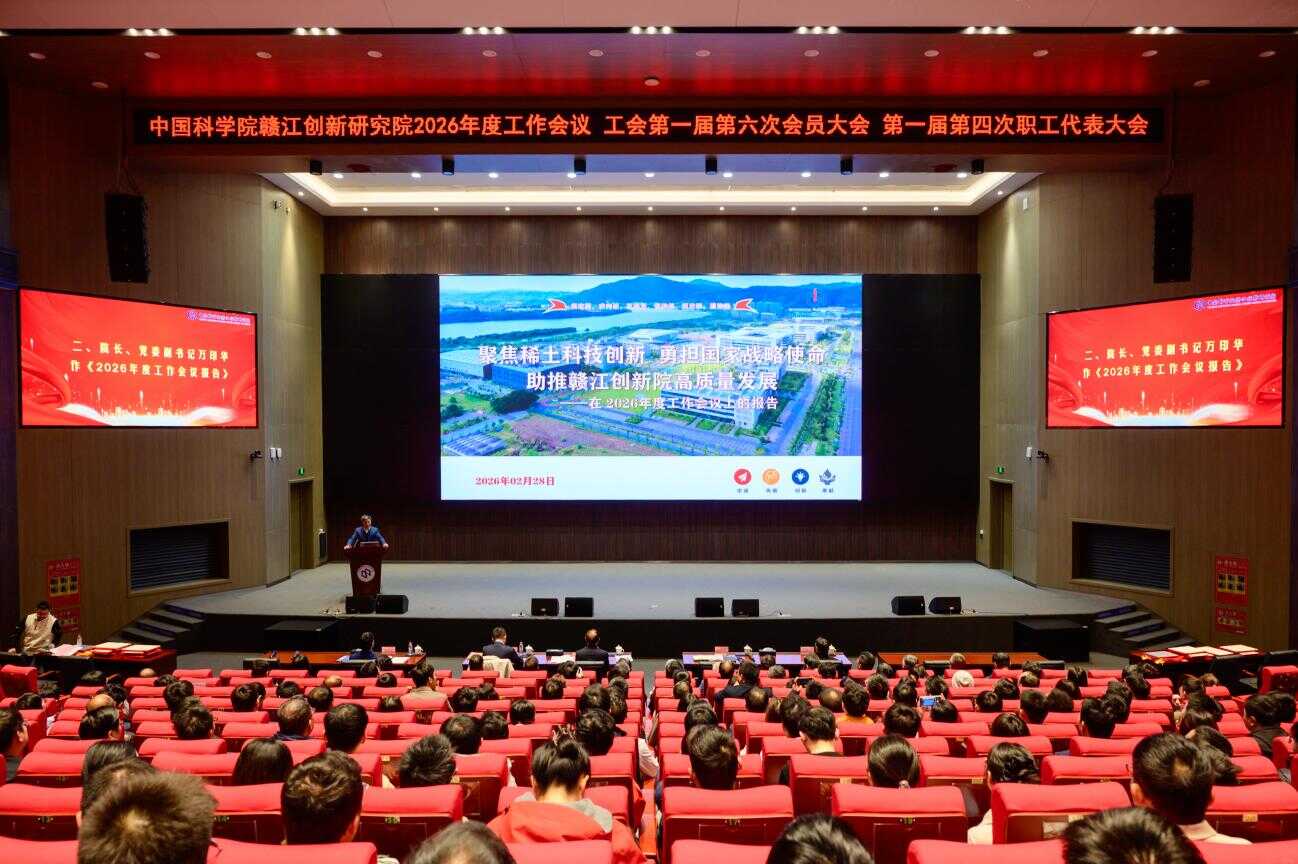 会议听取了院长、党委副书记万印华作的《聚焦关键矿产科技创新 勇担国家战略使命 助推赣江创新院高质量发展》的工作报告,与会人员一致认为工作报告客观总结了赣江创新院以习近平新时代中国特色社会主义思想为指导,学习贯彻党的二十届三中、四中全会精神和习近平总书记重要指示批示精神,贯彻落实党中央、国务院重大决策部署和中国科学院党组重点工作安排,紧紧围绕抢占科技制高点,以谋划“十五五”和深化国家级平台建设为主线,以高质量承担和完成国家重大科技任务为重点,统筹推进改革创新发展,各项工作取得新成效、新进展,助推赣江创新院高质量发展。报告还全面部署了2026年度重点工作,提出要持续深化党的领导和党建工作,全面推动“十五五”规划实现良好开局,持续完善建制化攻关体系,加快推动人工智能驱动的科研范式变革和科研管理转型,高质量推进创新人才高地建设,统筹高质量发展和高水平安全。